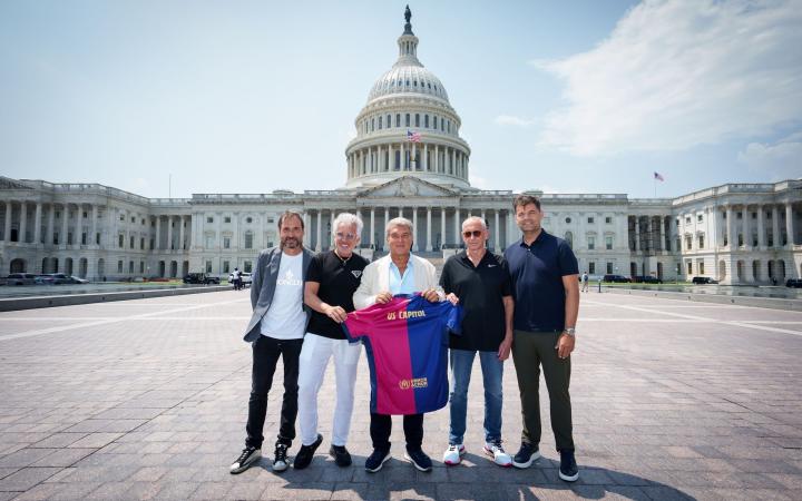 巴塞罗那足球俱乐部的主席拉波尔塔带领着一支代表团,包括董事会成员米克尔-坎普斯、哈维尔-普伊奇、费兰-奥利维和胡安-索莱尔,于当地时间周四下午抵达了位于美国华盛顿的美国国会大厦和国会图书馆。这次访问旨在加强巴萨与美国政府和机构之间的联系,同时也是球队在美国进行季前巡回赛期间的一项官方活动。